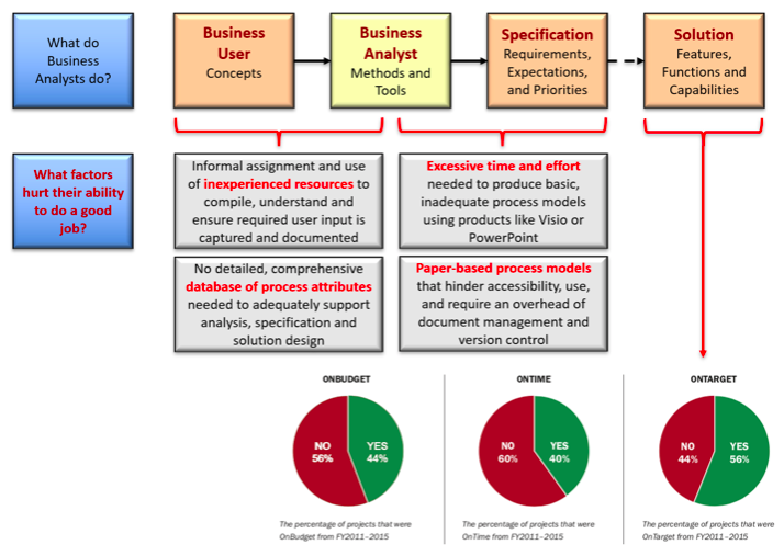 2) Excessive time and effort used to create, maintain and present rudimentary flowchart or swim lane process models, due to the use of basic drawing tools such as Visio and PowerPoint.